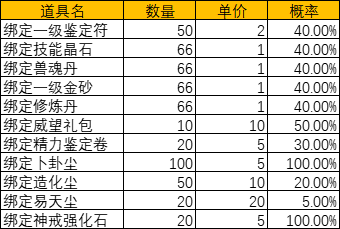 以下奖励按概率计算(每种奖励单独计算),最多可以获得以下全部奖励;